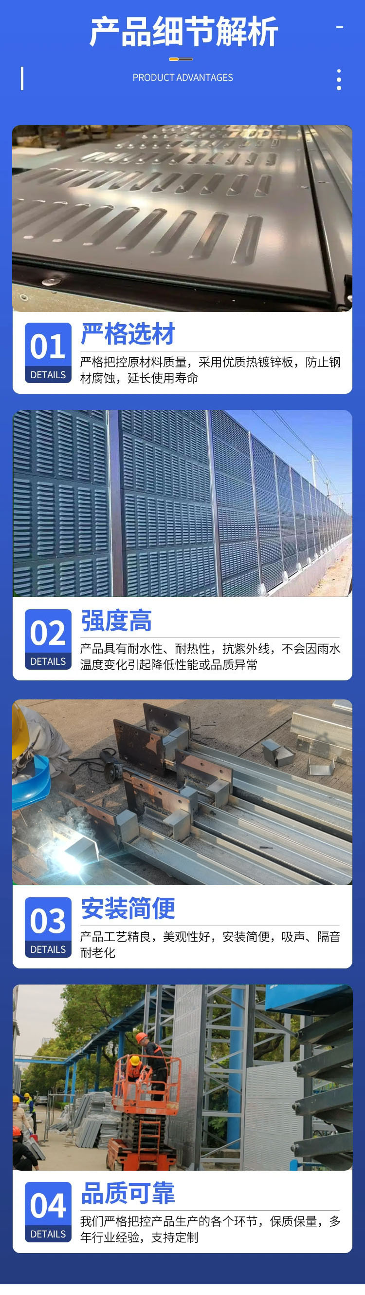 頂部弧形隔音屏特點(diǎn):樣式美觀(guān)、隔音性能好。